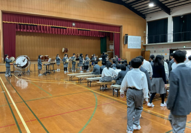 吹奏楽部の演奏の中、新入生が入場し、新2・3年生が迎え入れました!