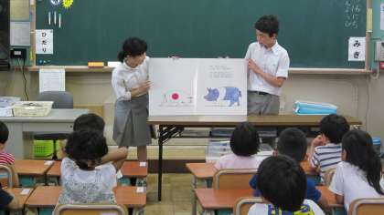 安朱小学校での読み聞かせの様子です