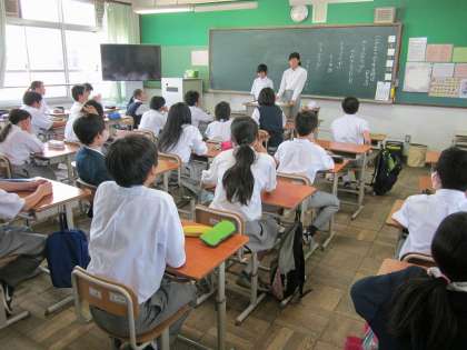 写真は生徒総会に向けてリハーサルを行っている一年生の様子です。