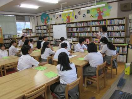 3年生国語科,図書館オリエンテーションにあたり,学校司書の伊藤先生によるブックトークが行われました。今回は『フェアトレード』『ルワンダに教育の種を』『ひとりではじめたアフリカボランティア』の3冊を中心に,本を通して見えるアフリカの今にふれる時間となりました。