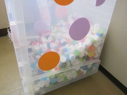 竹鼻南部自治会で回収いただいたものをお持ちいただきました。集計して空っぽになっていた「ロボ」の中に補給がされました。ありがとうございました。
