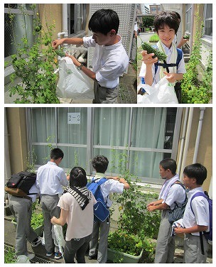 その実りを収穫しているのは,生徒会本部有志,美化保健委員有志,そして水やりボランティアの人たちです。