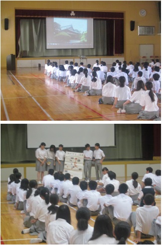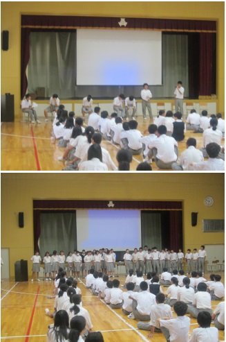 各学級より 「校外学習のまとめ」と「学校生活の振り返り」についての発表がなされました。夏季休業前のまとめの集会です。