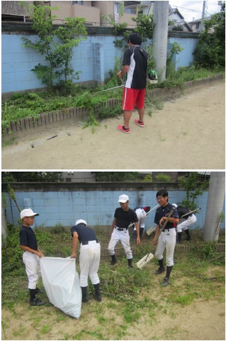 8月4日(金)グラウンド周囲の草刈り〜野球部