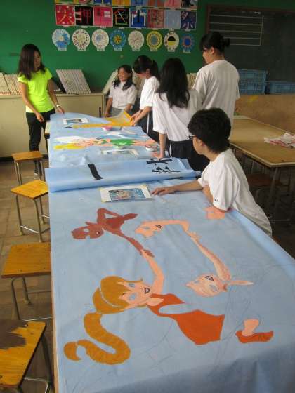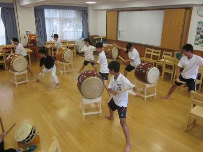生徒会本部は太鼓の練習,美術部は合唱コンクールの看板制作中。体操服姿なのは美術準備室の片づけ・清掃作業をしていたからです。