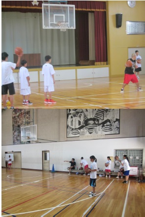 体育館で 女子バスケットボール部 と 男子バスケットボール部です