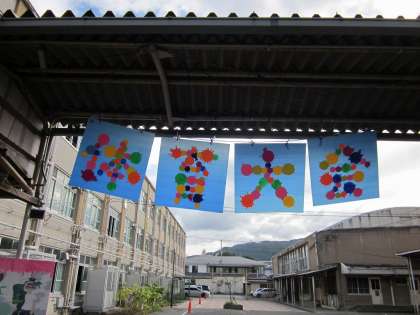 すべての来場者をお迎えする看板は美術・イラスト部によるものです