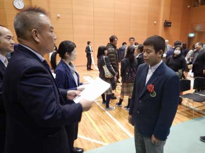 11月11日(土)に開催された弁論大会に,本校からは「僕の英雄記」と題して生徒会長として取り組んだ一年間の歩みを振り返る弁論で参加しました。当初は思い通りにいかない中で,力をあわせて「一人一人がHEROに」向かっていった道のりを力強く語りました。(京都市総合教育センター ホールにて)