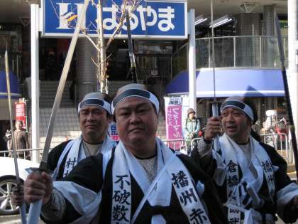 雪がちらつく中 山科義士まつりの見学に出かけました。大石内蔵助をはじめとする義士の勇壮な姿にみとれました。