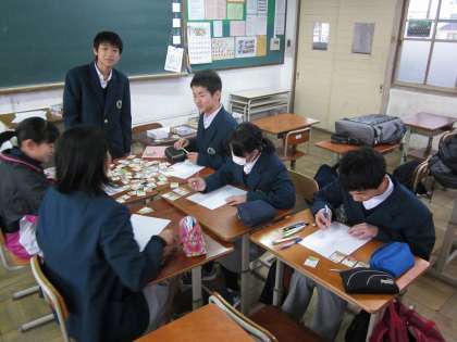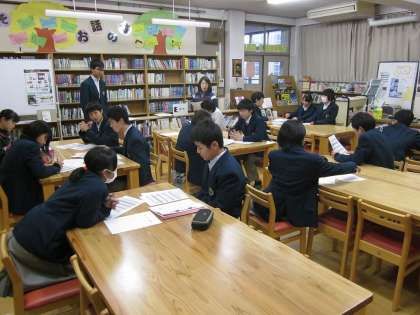 後半は1年生のみ,百人一首大会に向けた準備作業です。