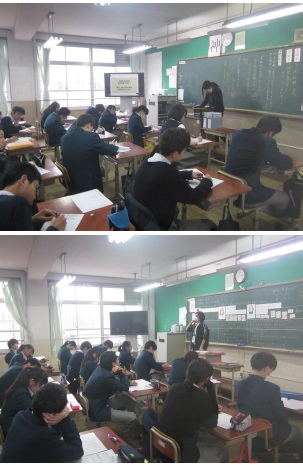 3年1組「望ましい生活習慣」3年2組「勤労の尊さについて考える」3年3組「伝統と文化を守る」3年4組「友情・信頼の尊さ」それぞれクラスの担任とは違う先生の授業でした。