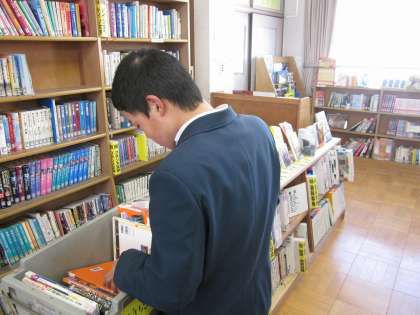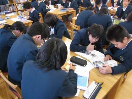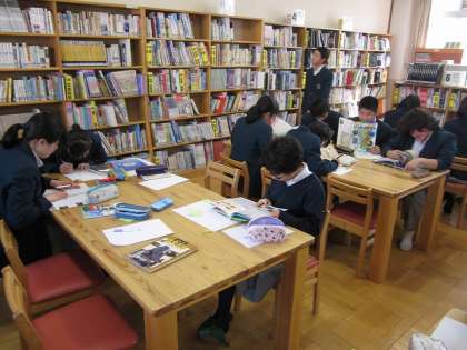 今日は2組が図書館で学習しました。