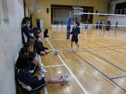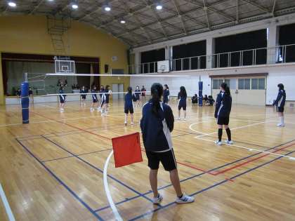 体育館では,バレーボールです。