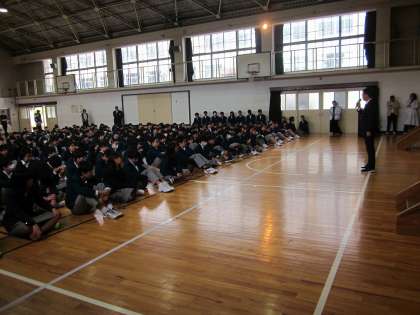 この体育館に全校生徒が集まるのは,今日が最後となりそうです。来週23日(月)から解体撤去工事が始まります。