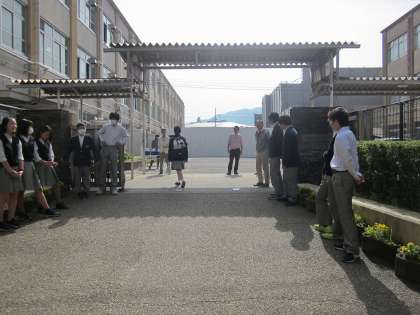登校時の校門の風景です。