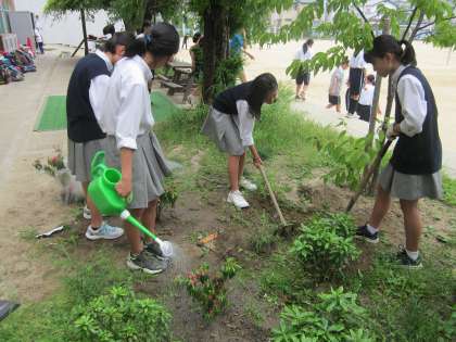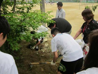 美化保健委員会の3年生がツツジを植えました。2月に生徒会本部が沈丁花を植えたプロジェクトの続きです。