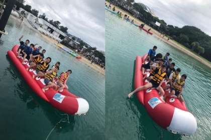 スリル満点のバナナボート,ずっと笑顔でいられたのでしょうか