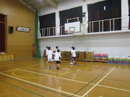 男バスの顧問は3人とも沖縄にいます。女バス顧問の引率で山階小学校へ移動し,自分たちで練習しています。