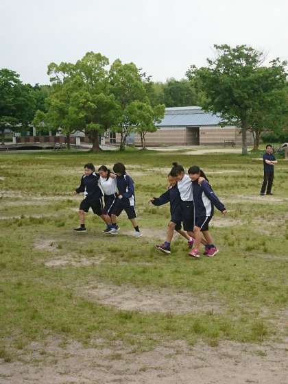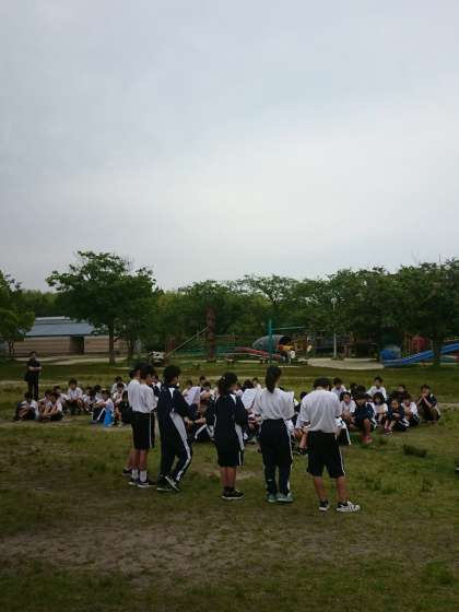 レクリエーションが始まりました。体育委員さんたちの踏ん張りどころです。ご紹介が遅れましたが,バス内レクは美化・保健委員会,入所式は学級委員長,フィールドアスレチックと昼食は生活委員会,校歌コンクールは文化・図書委員会,学年レクリエーションは体育委員会が担当しています。