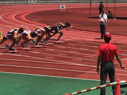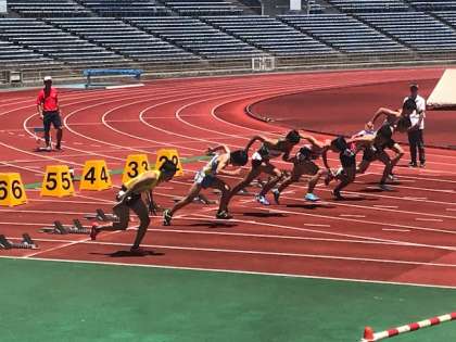 女子100m予選では安江珠里さんが13秒85で自己記録を更新しました。