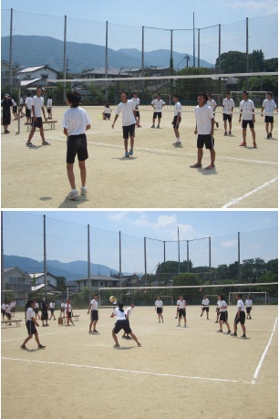 引き続き暑い中,3年生は男女ともバレーボールです(1・2枚目)