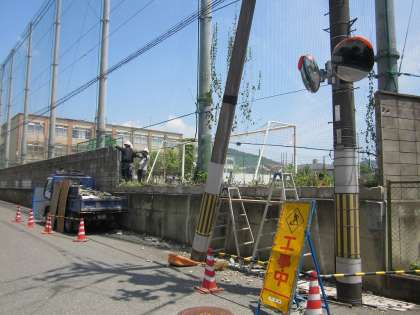 本日,該当箇所の塀を取り除く工事が行われています。【写真2,3】猛暑の中,お疲れ様です。