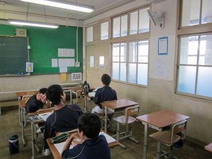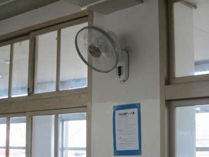 1年生の3教室,2年生の1組・2組・3組,3年生の4教室に2台ずつの扇風機が設置されました。工事続きで不自由な学校生活の中,安祥寺中学校同窓会から贈られたものです。エアコンの効率が向上し,座席による体感温度の違いを少なくすることが期待されます。