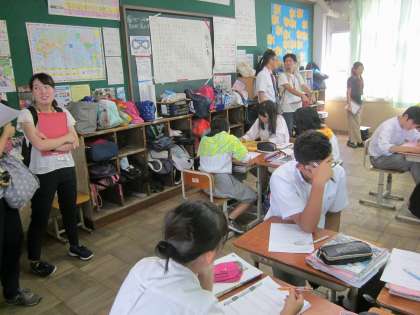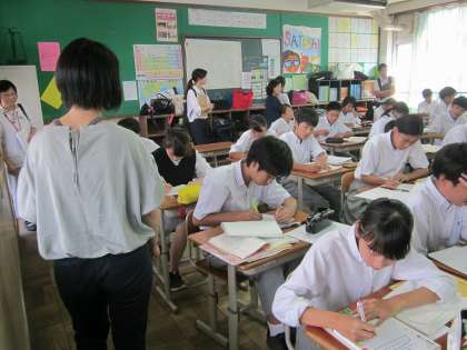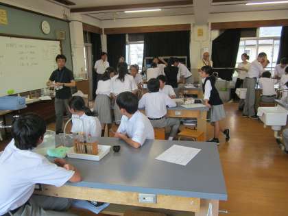 9月5日(水)6限,西野小・山階小・安朱小の先生が授業参観に来られました。40名以上の先生が参観し,その後授業者とともに協議の時間を持ちました。