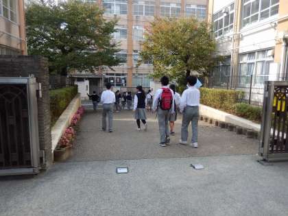 フィールドワークに向かうためグループごとに出発する1年生(写真は24日の午後です)