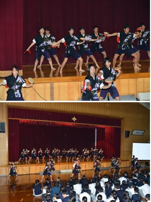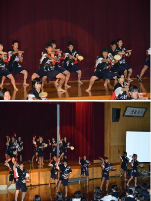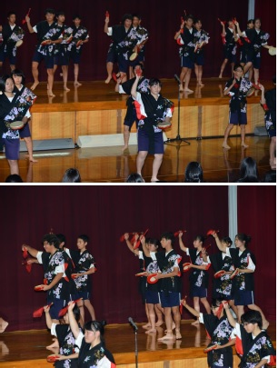 〇まず最初にエイサーの踊りを見て,曲もゆるやかで先輩の表情もゆったりしていて,見ているがわもホンワカしてました。自分も沖縄に行くので踊ってみたいなと思いました。げきでは,沖縄戦争のおそろしさ,こわさ,ざんこくさがよくよく知れました。お国のため,お国のためで自分は命をかけたくないと思います。(2年生)