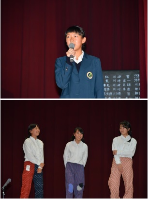 3年生の学習発表会を見て,戦争というのは本当にざんこくで辛くこわいものだなあと改めて感じることが出来ました。とても演技も上手ですごかったです。友達や家族,人の命が簡単に失われて,悲しむ人も増えて。戦争というものは,これからも絶対あってはいけないと感じました。約20万人も亡くなった人がいるということにとても胸が痛くなりました。アメリカ軍からの攻げきのばくだんなどのとんでもない数の量におどろきました。(1年生)