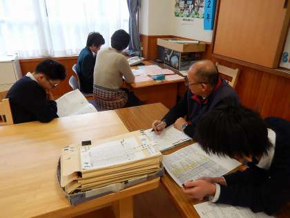 1月の「生き方探究・チャレンジ体験」では30の事業所でお世話になります。事前訪問の日程調整をお願いするための電話をかけています。