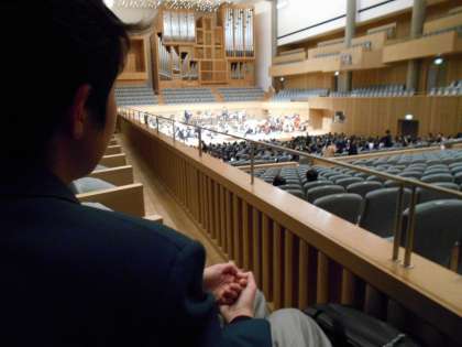 写真は入場を待つエントランスと開演を待つホール内での1コマです。