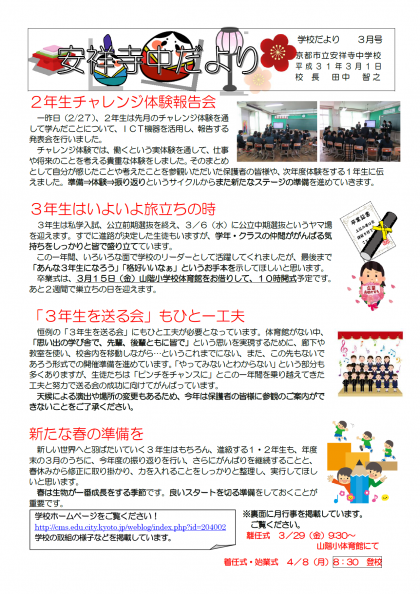 学校だより3月号をアップしました。ご覧ください。