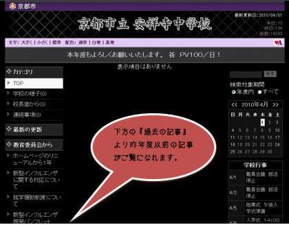 なお、これまでに掲載された過去の記事については、ホームページ左下の『過去の記事』またはホームページ右上のカレンダーにより御覧いただくことができます。