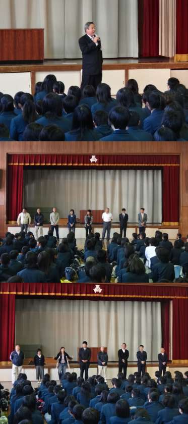 右下:生徒会代表Hくんによる歓迎の挨拶