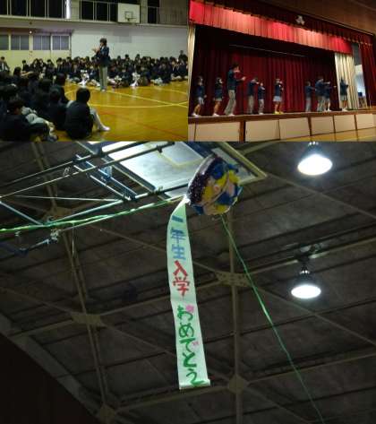 本日3限、全校生徒が体育館に集まり、生徒会本部主催の「新入生を迎える会」が行われました。