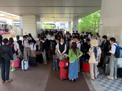 バスは順調に高速道路を走り,予定通り9時に大阪国際空港(伊丹)に到着しました
