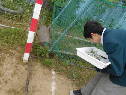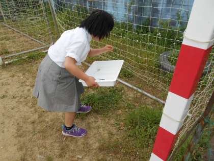 舞い上がる砂が小雨で少しは落ち着いたか という中,校内で野草を集めています
