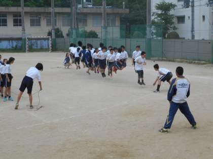 月末の校外学習に向けて,クラス対抗大縄跳びの練習を始めました