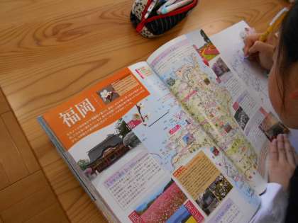 自然環境や産業の特色について,図書館の書籍を用いてまず調べています。