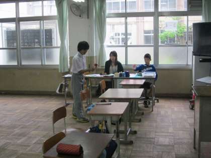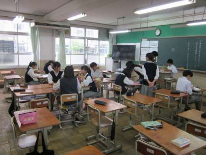1年1組〜3組は科学センター学習,2年生は校外学習(高等学校訪問)。3年生と4・5組だけの昼休みです。