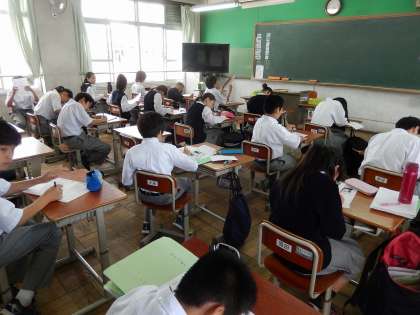 写真は朝7時50分頃に教室で自主学習する1年生と