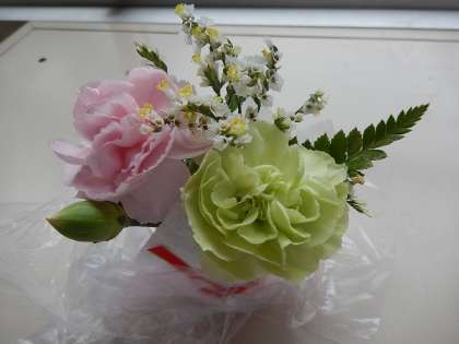 今月の花が届きました。涼しげな色合いが選ばれていますね