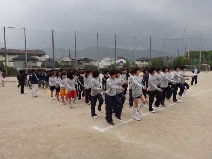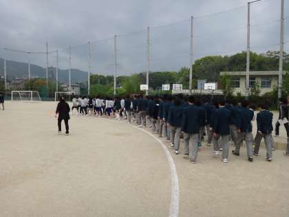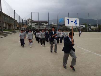 明日の春体開会式に備えて、放課後に行進練習を行いました。小雨がちらほらと降りはじめましたが、生徒は集中して練習に取り組み、すぐに終了しました。