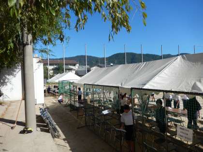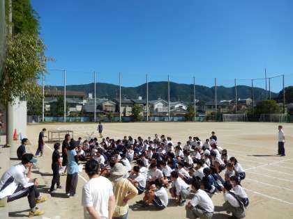 昼食後,専門委員と生徒会本部の約100名が体育大会準備にあたりました。明日は天候に恵まれて体育大会が実施できる見通しです