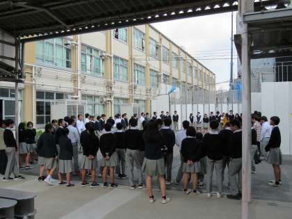 2学期も折り返し点を過ぎ後半に入りました。大きな学校行事も成功裡に終えることができ、次週、3年生の学習発表会がこの秋最後の見せ場となります。昼休みに3年生全員で「島唄」を歌う姿を、校舎から1・2年生が眺めています。上級生のがんばる姿が受け継がれていきます。