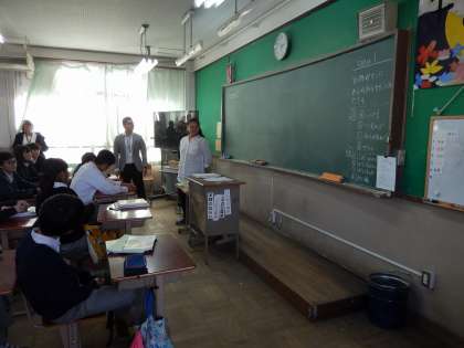 2年2組の英語授業 アナ先生と久保田先生による授業を他校で働く14名のALTと教育委員会の担当者が参観し,研究協議を行いました。生徒は,いつも通りに生き生きと学習に取り組みました