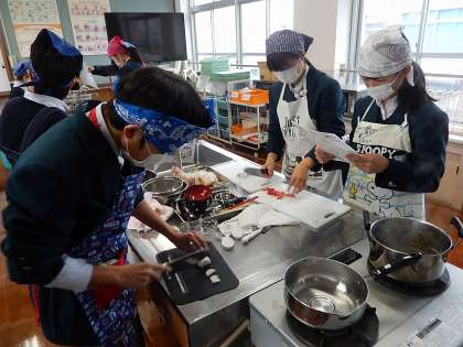 調理実習「京都の白みそ雑煮」 1年生技術・家庭科