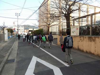 あいさつ運動と登校風景